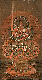 | Aizen Myōō, colour on silk 絹本著色愛染明王画像 kenpon chakushoku Aizen Myōō gazō |