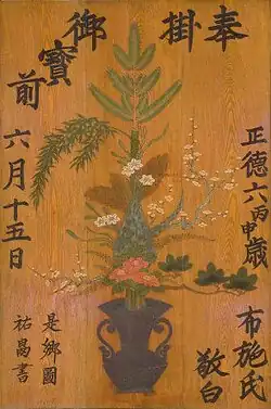 | Tachibana, lacquer painting (large ema) 漆絵立花図(大絵馬) urushi-e rikka zu (dai ema) |