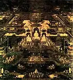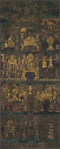 Shaka and the Sixteen Benevolent Deities, colour on silk