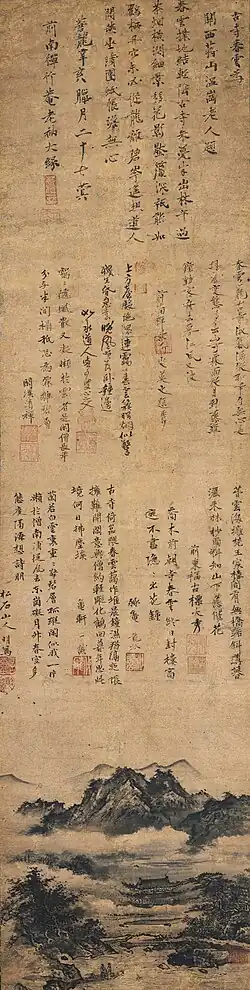 Yuan dynasty Kyoto Kyoto National Museum 103.0 centimetres (40.6 in) by 46.0 centimetres (18.1 in) 34°59′24″N 135°46′25″E / 34.98995551°N 135.77351413°E / 34.98995551; 135.77351413 (Kyoto National Museum) [17]