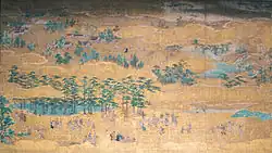 Nanboku-chō/Muromachi period Kyoto (Kamigyō-ku) Kitano Tenmangū referred to as the archetypal view 35°01′52″N 135°44′07″E / 35.031111°N 135.735278°E / 35.031111; 135.735278 (Kitano Tenmangū)
