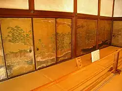 Momoyama period Kyoto (Sakyō-ku) Hōnen-in (法然院) seven panels (four in the tokonoma and three fusuma), three panels (on the chigaidana wall), and four panels (on fusuma) respectively 35°01′26″N 135°47′51″E / 35.023963°N 135.797468°E / 35.023963; 135.797468 (Hōnen-in) [5][6][7]