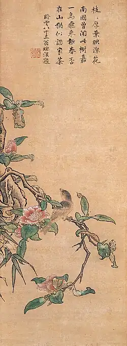 紙本淡彩花隖夕陽図〈惲南田筆/辛亥(康煕十年)の自題がある〉