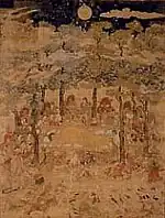 | Shaka's Eight-Phase Nirvana, colour on silk 絹本著色釈迦八相成道図 kenpon chakushoku Shaka hassō jōdō zu |
