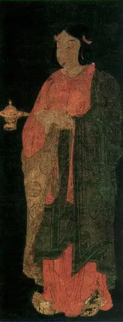 | Shōtoku Taishi's Lecture on the Śrīmālādevī Siṃhanāda Sūtra, colour on silk 絹本著色聖徳太子勝鬘経講讃図 kenpon chakushoku Shōtoku Taishi Shōman-kyō kōsan zu |