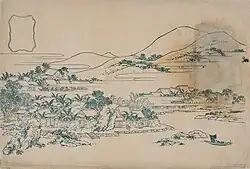 In Genryō (1718–1767) was born in Shuri and summoned to the Ryūkyū court on account of his talent in painting aged 12; from 1752 he spent two years in China; after the death of Yamaguchi Sōki (山口宗季), In Genryō was the leading court painter; most of his works are now lost; the shape of the branches of the plum and the distribution of its flowers, combining vigour with delicacy, are characteristic of the Southern School and thence of Nanga[8][9] | ![]() |