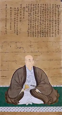 | Sen no Rikyū, colour on silk 絹本著色千利休像 kenpon chakushoku Sen no Rikyū zō |