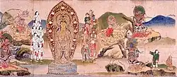 | *Divinely inspired Reception of the Two Great Sutras, colour on silk 絹本著色両部大経感得図 kenpon chakushoku ryōbudai kyōkan toku zu |