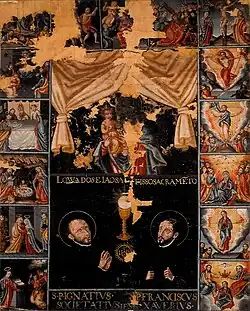 discovered in 1920 in a bamboo cylinder roped to roofing material in a village outside Osaka once ruled by the kirishitan daimyō Takayama Ukon; restored in 2006 to celebrate the 500th anniversary of the birth of Francis Xavier, who is depicted alongside Ignatius of Loyola[6] | ![]() |