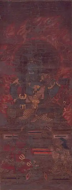 | Blue Fudō, colour on silk 絹本著色青不動 kenpon chakushoku ao Fudō |