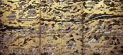 | Scenes in and around the Capital, colours on paper with gold ground 紙本金地著色洛中洛外図〈/六曲屏風〉 shihon kinji chakushoku rakuchū rakugai zu (rokkyoku byōbu) |