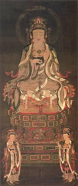 - ^ "絹本著色阿弥陀三尊像" [Amida Triad, colours on silk]. Yamagata Prefecture. Retrieved 8 October 2013.