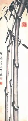 | Bamboo, ink on paper, by Yanagisawa Kien 紙本墨画墨竹図 柳里恭筆 shihon bokuga bokuchiku-zu Ryūrikō hitsu |