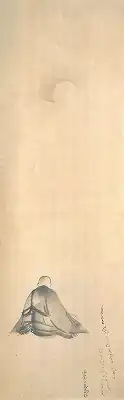 early C17 | Yamagata | private | seated monk with comments or san (賛) by Kōgetsu Sōgan (江月宗玩); inscription reads 黒月則隠白月則現江月叟書之 | ![]() |
