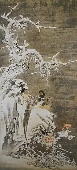 - ^ 紙本着色雪中雉子の図 (殷元良筆) [Pheasant in the snow, colours on paper, by In Genryō] (in Japanese). Naha Municipal Educational Research Institute. Retrieved 28 September 2013.