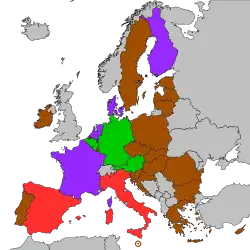 At present, there are twelve monarchies in Europe, of which six are members of the European Union: Belgium, Denmark, Luxembourg, the Netherlands, Spain and Sweden, and six are not: Andorra, Liechtenstein, Monaco, Norway, the United Kingdom and the Vatican City. All six monarchies in the European Union are constitutional monarchies. In all six monarchies that are in the EU, the monarch is legally not vested with political power, or the monarch does not utilise the political powers vested in the office by convention. At the dawn of the 20th century, France was the only republic among the future members states of the European Union; the ascent of republicanism to the political mainstream only started at the beginning of the 20th century. In Belgium, the monarchy enjoys a lower degree of support than in other European monarchies, and is often questioned.[9] Popular support for the monarchy has historically been higher in Flanders and lower in Wallonia; however, in recent decades these roles have reversed.[10]