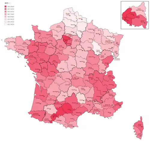 The table is compiled only for departments in metropolitan France. Data source: INSEE[6][7][8]