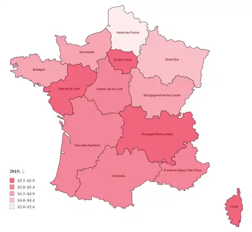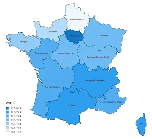 - ^ a b c d e f "Espérance de vie en 2015: Comparaisons régionales et départementales" [Life expectancy in 2015: comparison of regions and departments]. National Institute of Statistics and Economic Studies (France) (in French). Archived from the original on 2017-08-27. Retrieved 2017-08-27.