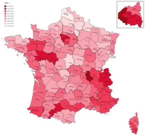 | 94 | Val-de-Marne | 80.8 | 85.5 | 4.7 | 83.15 | 0.65 | 81.4 | 86.2 | 4.8 | 83.80 | 0.75 | 82.4 | 86.7 | 4.3 | 84.55 | 1.40 |
