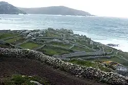 - leira [f] 'plot, delimited and levelled field', from the medieval form laria, from proto-Celtic *ɸlār-yo-,[5][76] akin to Old Irish làr 'ground, floor', Cornish and Breton leur 'ground', Welsh llawr 'floor'. However, for the Spanish dialectal lera 'vegetable garden, area of land' (Salamanca) is proposed a Latin origin *illam aream > *l'aream > laira, which don't appears to be appropriate for the Galician forms, already documented as larea and ipsa larea in 870.[77]