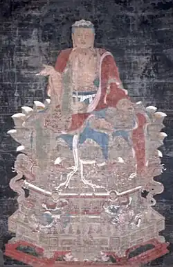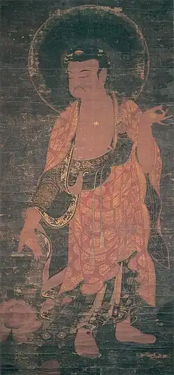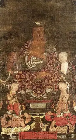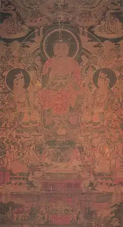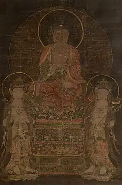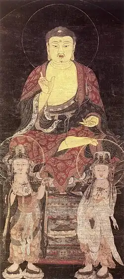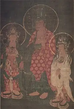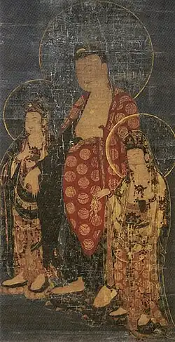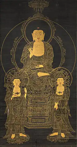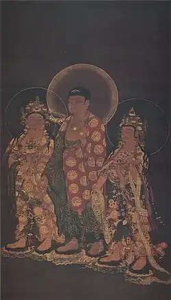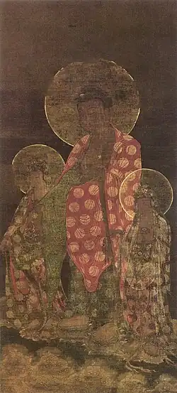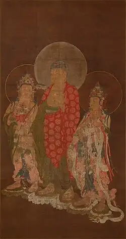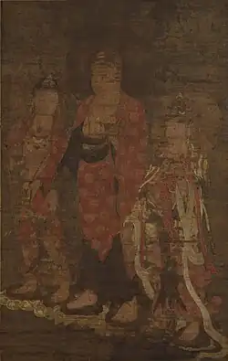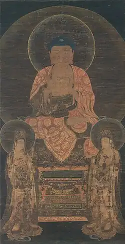 14. ^ a b c 絹本著色阿弥陀三尊像 [Amida Triad, colour on silk] (in Japanese). Agency for Cultural Affairs. Retrieved 26 October 2013.