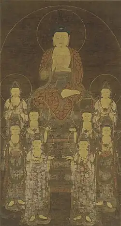 This list is of Goryeo Buddhist paintings, Korea (918–1392). Approximately one hundred and sixty hanging scrolls are known.[1][2][3][4][5][6][7][8][9][10][11][12]