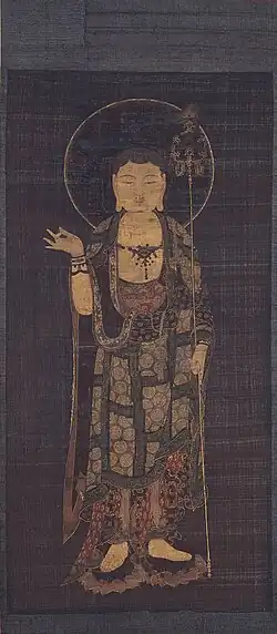 Ksitigarbha Takatori Minamihōkke-ji (南法華寺) 105.9 centimetres (3 ft 5.7 in) by 36.4 centimetres (1 ft 2.3 in) 34°25′35″N 135°48′36″E / 34.426422°N 135.809886°E / 34.426422; 135.809886 (Minamihōkkeji) [6]
