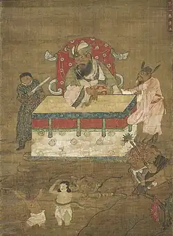Yen-lo Wang, Fifth of the Ten Kings of Hell C14 New York City private sold at Christie's in 1992 61.2 centimetres (2 ft 0.1 in) by 45 centimetres (1 ft 6 in) [72]