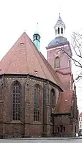 St. Nikolai Church[7] | western nave & tower rebuilt in 1598–1603, porch Baroque, sacristy G. Revival |