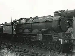 In August 1972 no 7027 was sold to the then Birmingham Railway Museum and left as the 23rd departure from Barry scrapyard. The engine was however never restored to working order and numerous parts were taken from the engine for use on fellow Tyseley based classmates No. 7029 "Clun Castle" and 5043 "Earl of Mount Edgcumbe". After being purchased by Pete Waterman's Transport Trust, it was stored outside the Crewe Heritage Centre still in its Barry Scrapyard condition. Following the removal of Waterman's railway equipment from the former LNWR site in 2016, it was moved to Peak Rail in April 2016. It was later sold on to Jon Jones-Pratt who planned to restore the engine to modern mainline standards. Owing to commitments elsewhere little progress was made on 7027's restoration and in January 2020 it was once again purchased by another individual with plans to restore the engine to working order, moving to Loughborough where the restoration is well underway. 7027 will however not be restored for mainline operation.[4] |