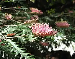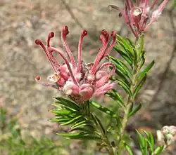 | 'Pretty Pink' | Grevillea arenaria x G. 'Crosbie Morrison'. Introduced in Victoria in 1985. | [2] | ||