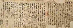 Nara period | 19.7 centimetres (7.8 in) by 37.6 centimetres (14.8 in) | N-71 | [36] [37] | ||