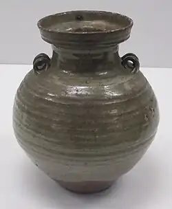 | ICP | Yue Ware, Four-Eared Celadon Jar 越州窯青磁四耳壺 Esshū-yō seiji shijiko |
