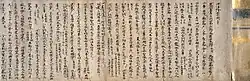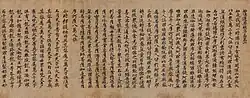 8 July 756 | after Emperor Shōmu died in 756, his wife Empress Kōken donated many of his possession to eighteen major temples, including Tōdai-ji, where they were stored at the Shōsō-in; the record of the donation to Hōryū-ji was originally mounted as a scroll; brushwork by Fujiwara no Nakamaro, Fujiwara no Nagate, Koma Fukushin, Kamo Tsunotari and Kazuragi Henushi | ![]() |