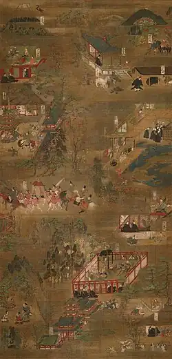 C16 | 3 scrolls; Muromachi-period version, with different ordering and lengths of episodes | 26.2 centimetres (10.3 in) by 791 centimetres (311 in), 821 centimetres (323 in), 625 centimetres (246 in) | N-19 | [29] | ||