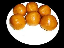 Laddu Gram flour (besan), ghee, sugar. Laddu