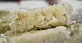 Mihidana Besan flour, sugar, ghee. Fried, sugar syrup based