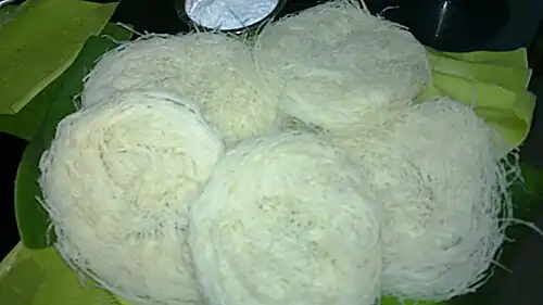 Patoleo Rice flour, coconut jaggery and grated coconut stuffing Wrapped in turmeric leaves and steamed