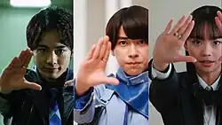 The main heroes of Kamen Rider Gotchard. From left to right: Supana Kurogane, Houtaro Ichinose, and Rinne Kudo.