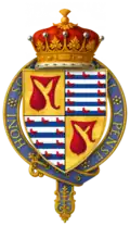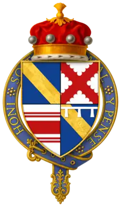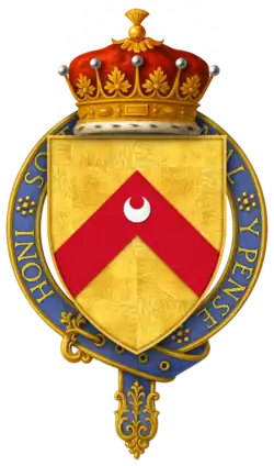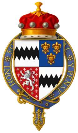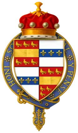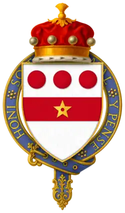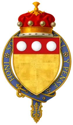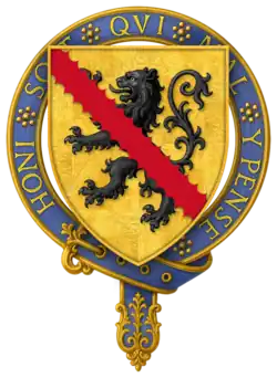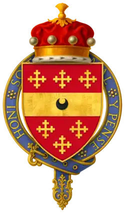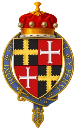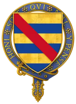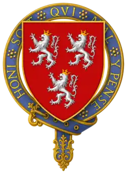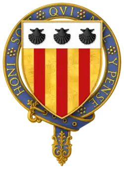 Hull seems to have died at the battle, or immediately after. According to P.S. Lewis, "Wedgwood's emendation of Stow is unwary. An English Chronicle, ed. J. S. Davies, Camden Old Series, 64 (1856), is suffering from a misplaced editorial semi-colon on p. 70. Hull's inquisition post mortem (P.R.O. C 139/155, no. 41) in fact gives the date of his death fictitiously as 3 Sept. 1453. On his accounts the date is given as 18 July 1453 (P.R.O. E 364/192, m. 1); Hull must have been killed on 17 July or died of his wounds the following day. - ^ a b "Knights of the Orders of Chivalry". Debretts. Archived from the original on 17 December 2011. Retrieved 5 March 2012.