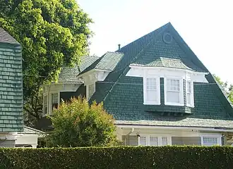Hollywood | Queen Anne/Dutch Colonial Revival cottage built in 1903 with shingled gables and fanciful turrets; site of "The Misses Janes School of Hollywood" starting in 1911 | ||