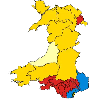 ![]() Colours on map indicate the party allegiance of each constituency's MP. | ||