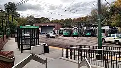 | Watertown Yard | Galen Street, Watertown | Midday layover for local bus routes; former terminus of the Green Line A branch and Green Line heavy maintenance facility |