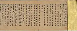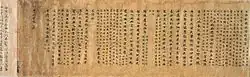 | Yupian (玉篇, gyokuhen), first half of vol. 27[17] | unknown | Part of a 30 volume Chinese character dictionary; one half of an extant complete volume[nb 7] | Tang dynasty, 7th–8th century | One scroll, ink on paper, 27.2 cm × 915.0 cm (10.7 in × 360.2 in) | Kōzan-ji, Kyoto |