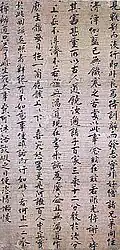 | Lotus Sutra in minute characters (細字法華経, saiji hokekyō)[36][37] | transcription by Li Yuanhui (李元恵, rigenkei) | 39 pages of 56 ruled lines with 32 characters per line; also known as Honored Companion Sutra (御同朋経, godōbōkyō); handed down at Hōryū-ji | Tang dynasty, 694 | One handscroll, ink on paper; 25.7 cm × 2,150 cm (10.1 in × 846.5 in) | Tokyo National Museum, Tokyo | |