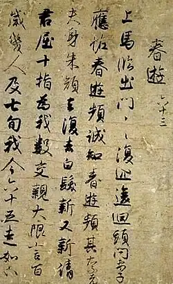 - ^ "Poems and letters (Chinese classic Huai-nan-tzu on reverse side). Known as "Akihagi-jo"". Emuseum. Tokyo National Museum. Archived from the original on 2011-09-27. Retrieved 2010-09-09.