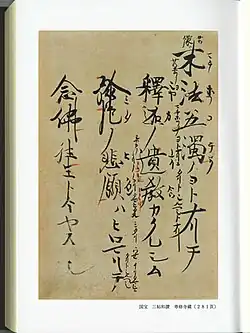 - ^ 収蔵品紹介:書跡 [Introduction to collected items: Writings] (in Japanese). Kongōbu-ji. Archived from the original on 2011-07-19. Retrieved 2010-09-23.