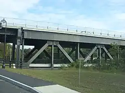 "In 1931, the N.H. State Highway Department built an unusual double-deck truss bridge over the Suncook River to remove traffic on the Daniel Webster Highway (Route 3) from Main Street in Suncook Village. Designed by Harold E. Langley (1896–1991), an award-winning department engineer, the bridge allowed high-speed bypass travel on the upper deck while providing connections with the Suncook Valley Road (Buck Street) on the lower deck. It was the only double-deck bridge in N.H. when it was replaced in 2007. Local sentiment persuaded highway officials to build a similar but larger span."[14]