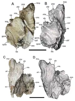 79. ^ a b Currie, Philip J.; Evans, David C. (2020). "Cranial Anatomy of New Specimens of Saurornitholestes langstoni (Dinosauria, Theropoda, Dromaeosauridae) from the Dinosaur Park Formation (Campanian) of Alberta". The Anatomical Record. 303 (4): 691–715. doi:10.1002/ar.24241. PMID 31497925. S2CID 202002676.