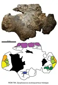 34. ^ Arbour, V. M.; Burns, M. E.; Sissons, R. L. (2009). "A redescription of the ankylosaurid dinosaur Dyoplosaurus acutosquameus Parks, 1924 (Ornithischia: Ankylosauria) and a revision of the genus". Journal of Vertebrate Paleontology. 29 (4): 1117. Bibcode:2009JVPal..29.1117A. doi:10.1671/039.029.0405. S2CID 85665879.
